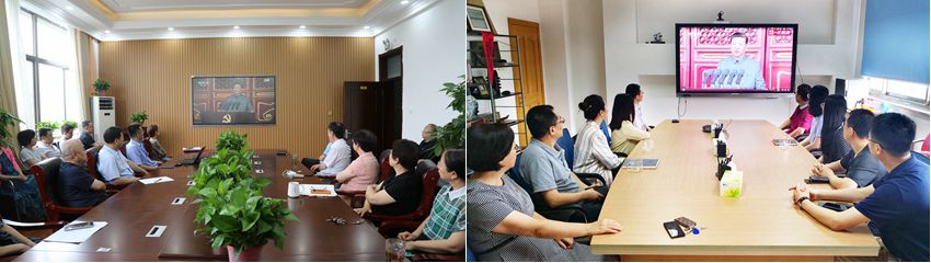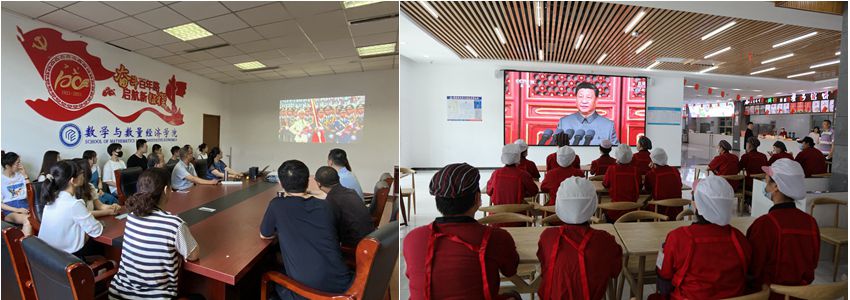 胸怀千秋伟业,恰是百年风华。7月1日上午,庆祝中国共产党成立100周年大会在北京天安门广场隆重举行。根据上级通知精神,我校组织广大党员干部和师生群众认真收听收看庆祝中国共产党成立100周年大会盛况,数万名师生通过电视、网络、手机等收听收看大会直播,认真聆听习近平总书记重要讲话。校党委书记王邵军、校长赵忠秀等各位校领导以及党委理论学习中心组其他成员、学校优秀党员、优秀党务工作者代表在燕山校区办公楼七层会议室集中收看。