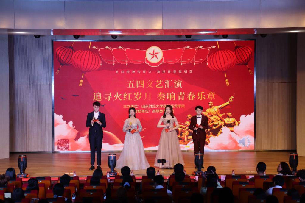 为庆祝中国共产党百年华诞,引导教育全院青年学习党的光辉历史,感悟党的初心使命,激励学生弘扬五四精神,争做不负使命的时代青年,5月10日晚上18:30,国际经贸学院在山东财经大学圣井校区文体活动中心举办“追寻火红岁月,奏响青春乐章”五四文艺汇演暨表彰大会。国际经贸学院党委书记徐世星,党委副书记郝秀峰,校团委老师孙炯明,数学与数量经济学院教师李青召,管理科学与工程学院辅导员沈健,国际经贸学院团委书记蒋静,教师常雪,辅导员王思远、李亚莉,学院各班代表以及兄弟学院学生会代表共同观看此次汇演,汇演于网上进行了同步直播。