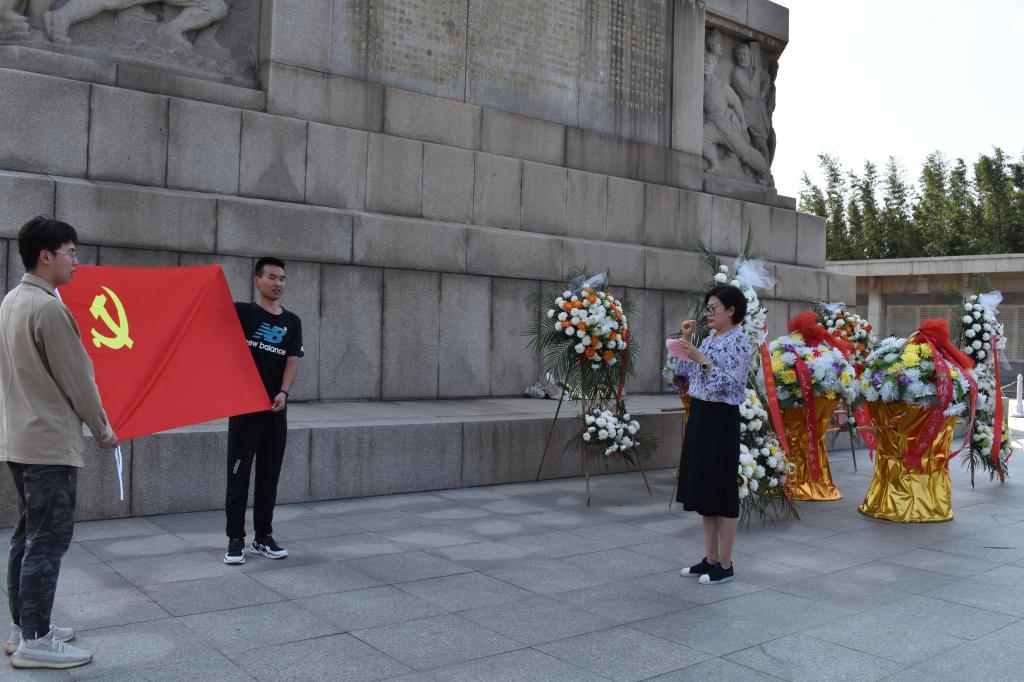 烈士忠魂昭昭,白云轻抚悠悠。初夏的徐州市淮海战役烈士纪念塔园林万木葱茏、庄严肃穆。为缅怀革命先烈,表达崇敬之情,我院师生党员拾阶来到淮海战役纪念塔前,缓步绕塔一周,深情瞻仰纪念塔及三万多名烈士名录。在四块无字碑前,全体党员思绪万千,深切缅怀无名烈士的牺牲奉献。站在纪念塔前,全体党员三鞠躬表达敬意。学院学生第三党支部书记郭夕熙带领全体党员面对鲜红的党旗,举起右拳,庄严地重温入党誓词。“我志愿加入中国共产党……”,字字千钧,句句铿锵,萦绕在纪念塔周围。大家参观了淮海战役纪念馆,一件件实物、一张张图片、一个个场景,让大家对淮海战役历史有了更深入的了解,深刻感受到了共产党领导下的革命军人一不怕苦、二不怕死的大无畏革命精神,感受你中有我、我中有你的军民鱼水情。随后,大家还参观学习了淮海战役碾庄圩战斗纪念馆。