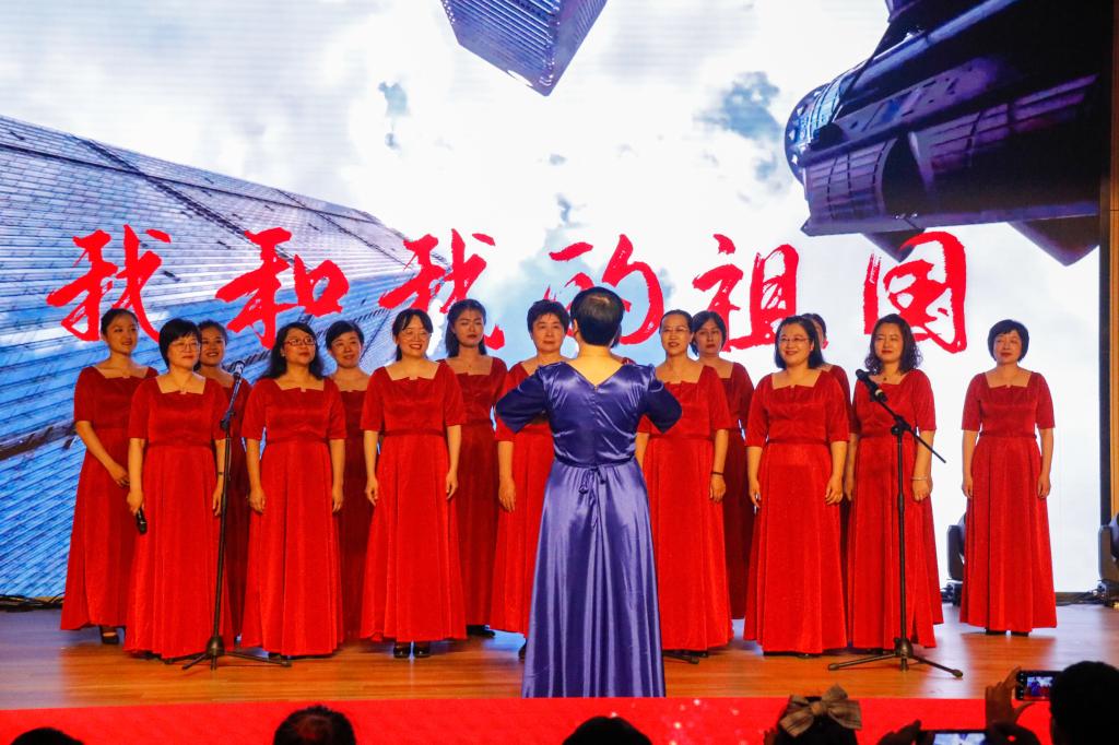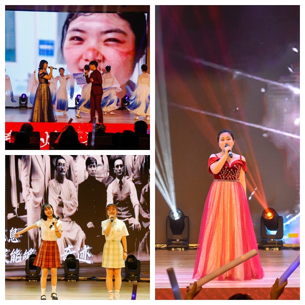 第三篇章,启航新征程。《不忘初心》,我们每个人都有为人民谋幸福、为民族谋复兴的初心;《国韵华彩》,源远流长,彰显着中国文化的自信、博大;《少年中国》展现着青年上九天揽月、下五洋擒蛟的志气风发、意气昂扬;王俊籽老师演唱的《五星红旗》,透露出对祖国无比的自豪与热爱。紧接着,《在灿烂的阳光下》唱响百年的风雨路程,唱响百年的伟大成就,真挚的赞歌,正娓娓道来。活动结尾,全体演职人员倾情献上大合唱《没有共产党就没有新中国》,悠扬浑厚,真挚动人,在场师生激情跟唱,全场气氛在高昂的歌声中再次奔向了高潮。