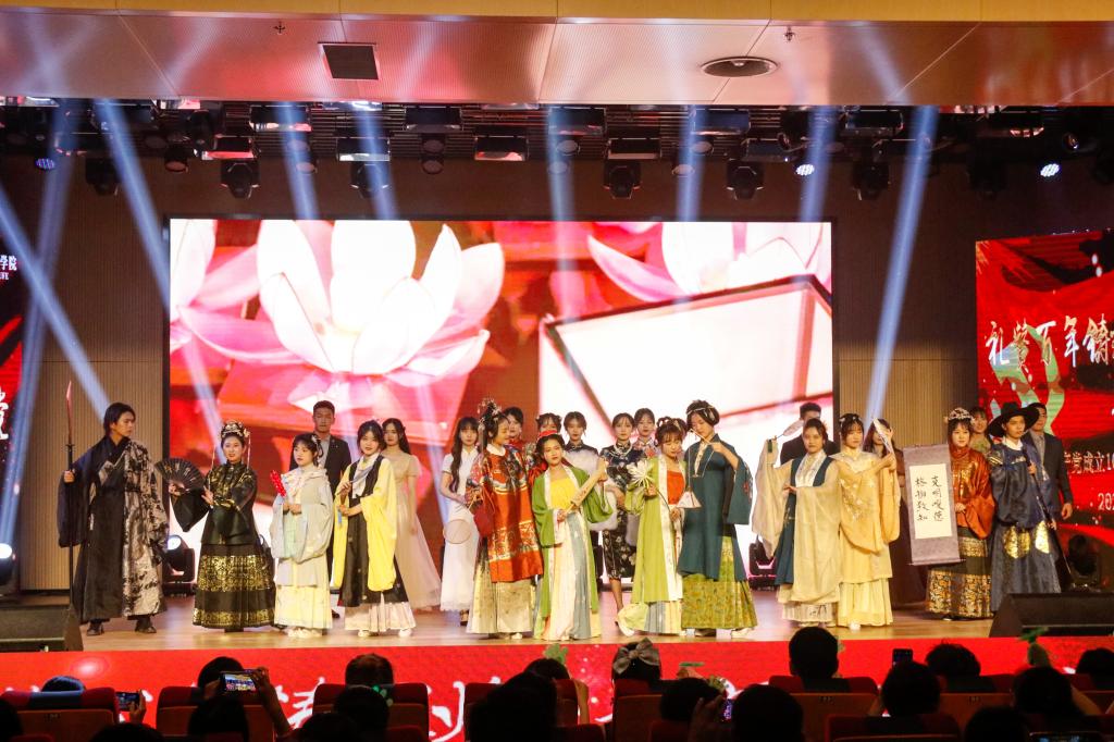 晚会分为永远跟党走、青春逢盛世、启航新征程三个篇章。在《喊出我的名字》激情澎湃、自信昂扬歌舞表演中拉开第一篇章——永远跟党走。一曲《少年》初心未变,激昂的旋律中传承着百年不移的赤子之心;《党旗颂》《灯火里的中国》诗歌合璧,咏唱对党最真挚的热爱与依恋;《因为有你,山河无恙》的情景剧,表达着对抗疫“逆行者”的崇高敬意与热情讴歌;教工合唱团《我和我的祖国》、《唱支山歌给党听》唱出了对党最朴实的情感,现场反响热烈。