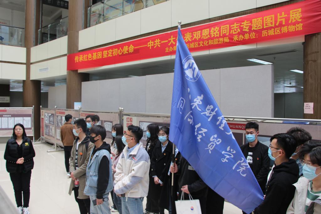 4月25日下午,国际经贸学院研究生党支部开展题为“传承红色基因,坚定初心使命”的主题党日活动,和中国海洋大学经济学院研究生党员一起实地参观学习邓恩铭同志专题图片展。这是两个支部共建的首场活动。